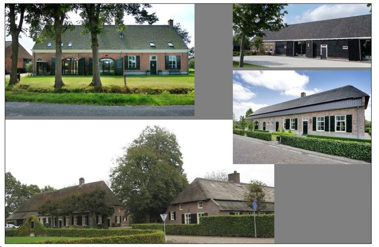 Om te waarborgen dat de nieuwe bebouwing aansluit bij de omgeving en past in de erfinrichting van het plangebied, is een beeldkwaliteitsplan opgesteld. Dit beeldkwaliteitsplan is opgenomen in de bijlage bij dit bestemmingsplan. In dit beeldkwaliteitsplan is onder anderen aangegeven dat de nieuwe bebouwing (twee-onder-één-kap woningen) refereert naar de type langgevel-boerderij met een zadeldak en een aaneenschakeling van ruimten binnen een eenvoudige bouwvolume (met rechthoekige plattegrond) in de richting van de nok. Verder is met architectonische kenmerken een nadere detaillering van de bebouwing weergegeven. Middels afbeeldingen wordt de gewenste beeldkwaliteit weergegeven, zie afbeelding 3.4.