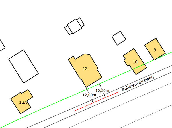 Op basis van bovenstaande invoergegevens is middels SRMI bepaald op welke afstand van het wegas van de Bulkheuvelseweg de 48 dB-contour gelegen is. Op basis van bovenstaande gegevens is bepaald dat de 48 dB-contour (inclusief correctie ex. art. 110g Wgh) op ca. 10,5 meter van de wegas gelegen is.