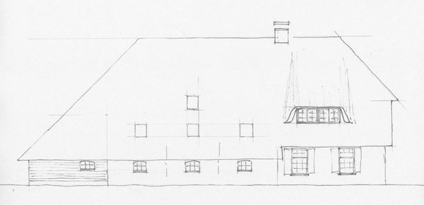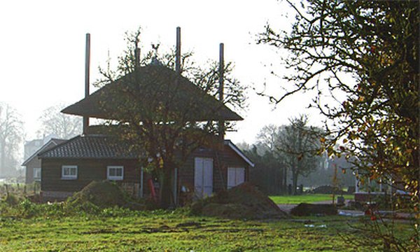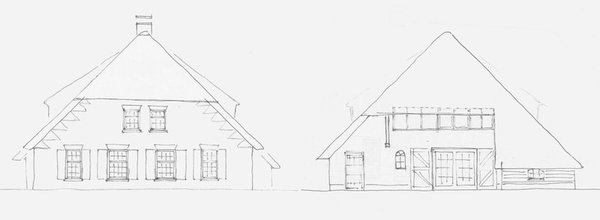 De voorgenomen nieuwbouw bestaat uit een vrijstaande burgerwoning, als een rietgedekte langgevel boerderij ontworpen door bouwkundig adviesburo Piet Timmer & Partners uit Buurmalsen. Vanwege de dakkapellen te beschouwen als een villa-achtige variant op het mengtype van een Saksische en Frankische boerderij.