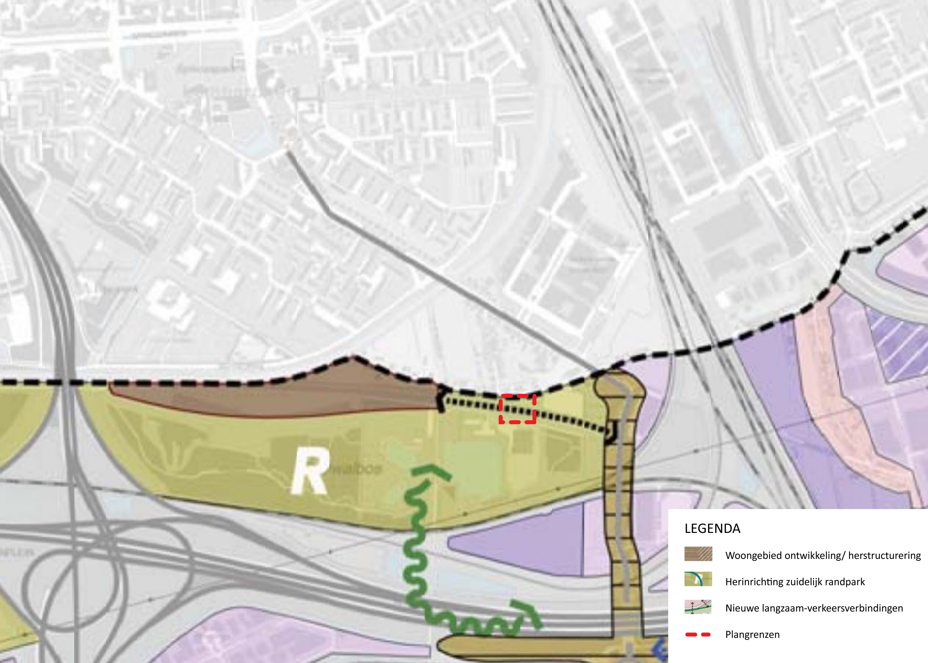 Uit voorgaande afbeelding blijkt dat het plangebied binnen het gebied van het te herinrichten Zuidelijk Randpark ligt. Ten westen van het plangebied ligt het gebied waar in de toekomst woningbouwontwikkeling mogelijk is en waar herstructurering plaats zal vinden. De structuurvisie noemt voor deze gebieden het volgende: