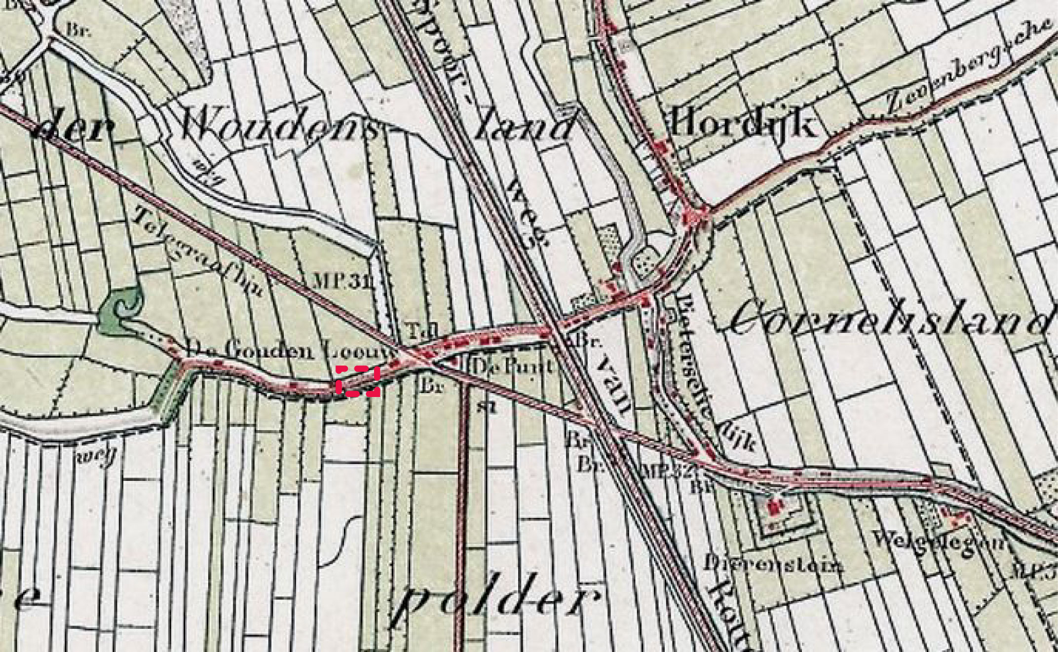Onderstaande afbeelding is een uitsnede van een Topografische Militaire Kaart (1881).