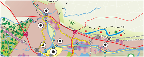 De strategie gaat niet specifiek in op het plangebied maar wel over de zone waar het in ligt. Het plangebied ligt in het gebied 'Rivier en land'. Hier wordt ingezet op: