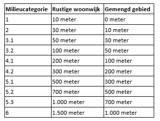 Met de Wet milieubeheer tracht de Nederlandse overheid de wederzijdse hinder tussen bedrijven en instellingen en de woonomgeving te voorkomen. Hiervoor wordt er gebruik gemaakt van milieucategorieën met een zonering. Door de VNG zijn voor deze categorieën richtafstanden opgesteld.