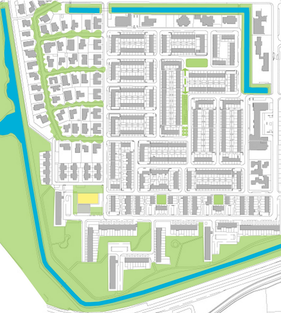 Op het niveau van de buurten zorgt de singelstructuur voor een groen element in de nabijheid van het wonen.