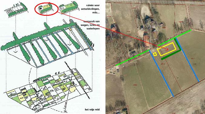 De locatie is op de gebiedskenmerkenkaart 'Laag van het agrarisch cultuurlandschap' aangeduid met het gebiedstype "jonge heide- en broekontginningslandschap". Dit landschap wordt gekenmerkt door grootschalige cultuurgronden, deels omzoomd door boscomplex. Erven liggen als blokken aan de weg geschakeld. Wegen zijn lanen met lange rechtstanden. Ontwikkelingen de plaatsvinden zijn schaalvergroting van bebouwing op agrarische erven, transformatie van landbouwerven tot burgererven en introductie van het hobby- vrijetijds en woonlandschap met bijbehorende vormen van grondgebruik en dierhouderijen (paardenbakken). De ambitie is de ruimtelijke kwaliteit van deze gebieden een stevige impuls te geven en soms een transformatie wanneer daar aanleiding toe is. Daarbij is het van belang om de raamwerken van het landschap en rechtlijnige ontginningsstructuren te versterken. Binnen deze raamwerken is ruimte voor verdere ontwikkeling van bestaande erven en soms de vestiging van nieuwe erven, mits deze een stevige landschappelijke jas krijgen. Het plangebied aan de Alleeweg voldoet volledig aan de uitgangspunten en ambities van het jonge ontginningslandschap. Het gebied ten zuiden van het perceel kenmerkt zich door een open bebouwing die door rechtlijnige landschappelijke structuren wordt begrensd (lanen, sloten, houtwallen). Door de uitbreiding van het agrarisch bouwperceel aan te laten sluiten bij de rechtlijnigheid van deze elementen ontstaat in het vrije veld de herkenbare verkavelingsstructuur die het landschap heeft. Onderstaande afbeelding illustreert dat.