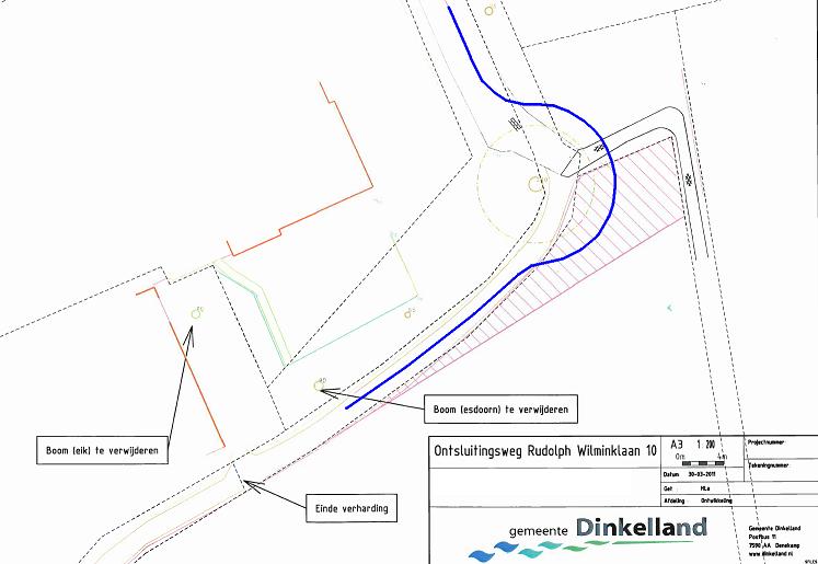 Op bovenstaande afbeelding is (in het blauw) de rijroute aangegeven. Deze manier van aanrijden leidt tot een deugdelijke ontsluiting van het perceel. Het aanleggen van dit ontsluitingspad is verkeerskundig een aanvaardbare oplossing.