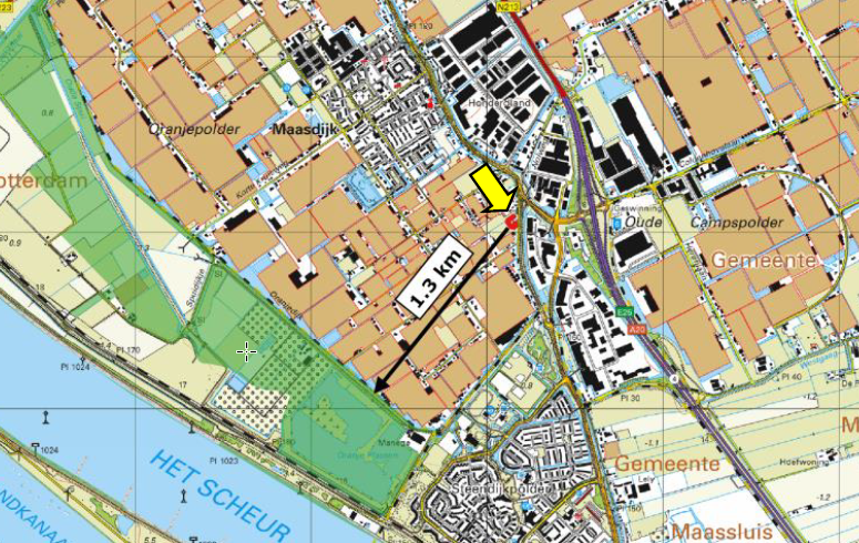Binnen de zone zijn er wel beperkingen voor het bestemmen van geluidsgevoelige bestemmingen. Voor woningen en andere geluidsgevoelige objecten in de zone geldt een voorkeursgrenswaarde van 50 dB(A). Uit de afbeelding blijkt dat de woning aan Maasdijk 170 te Maasdijk is gelegen buiten de 50 dB(A) contouren van industrieterrein Maasvlakte/ Europoort.