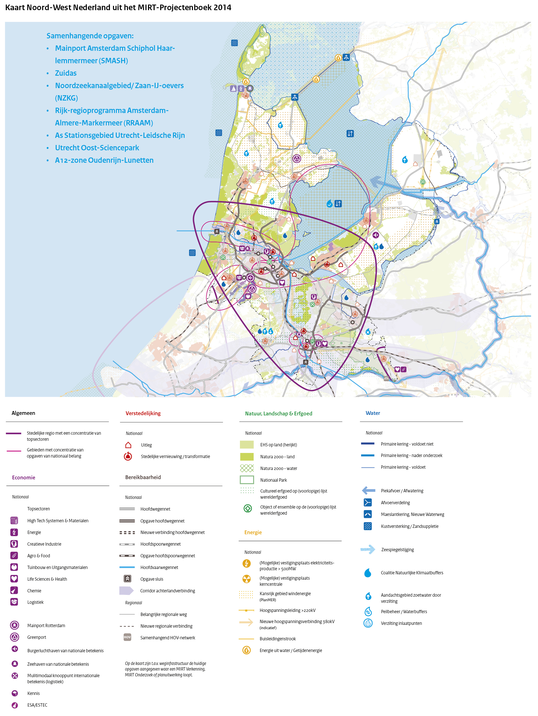 De Noordvleugel van de Randstad omvat het samenhangende stedelijke netwerk van het Noordzeekanaalgebied tot en met Utrecht, Amersfoort en Almere, met Amsterdam in het centrum. Het is een stedelijke regio die op nationaal niveau als economische motor fungeert en zich kan meten met andere groot stedelijke regio’s in Noordwest-Europa. De Noordvleugel draagt in belangrijke mate bij aan het realiseren van de doelstelling van het kabinet uit de Structuurvisie Infrastructuur en Ruimte (SVIR)6, om te komen tot een excellente ruimtelijk-economische structuur van Nederland door een aantrekkelijk vestigingsklimaat en een goede internationale bereikbaarheid van de stedelijke regio’s met een concentratie van topsectoren.