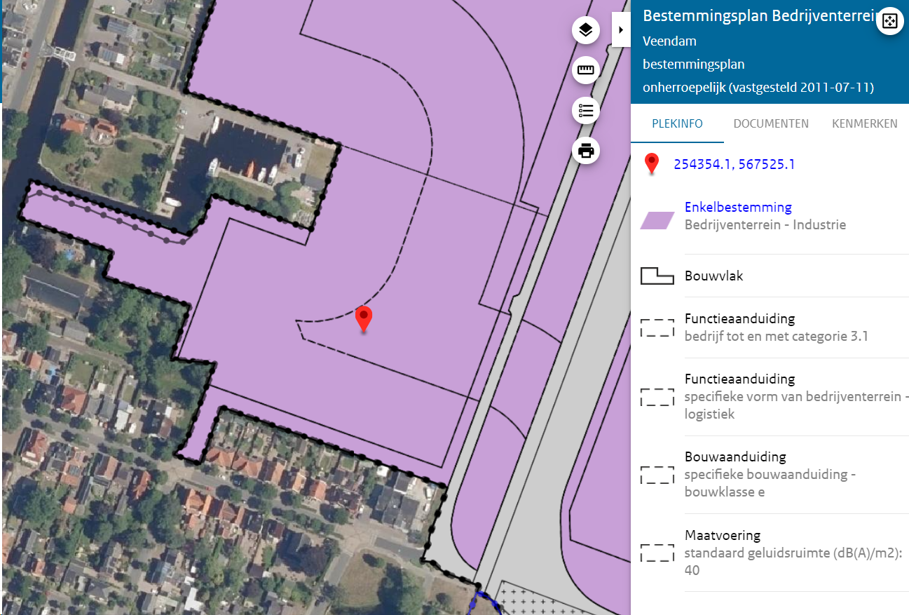 Tot slot is de aanduiding ‘standaard geluidsruimte in dB(A)/m²:40' van toepassing. Er zijn namelijk geluidzoneringsplichtige inrichtingen toegestaan op het bedrijventerrein. Ter plaatse van de aanduiding ‘standaard geluidsruimte in dB(A)/m²:40' mag de geluidsruimte ten hoogste 40 dB(A) bedragen. Deze aanduiding ligt over het gehele plangebied.