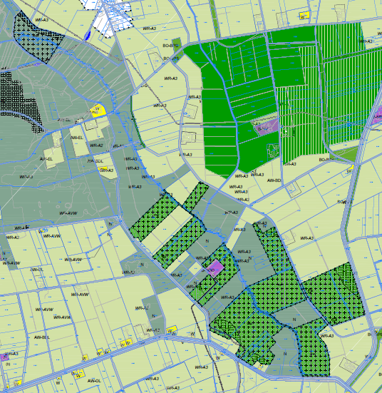 De agrarische percelen die worden gewijzigd naar een natuurbestemming zijn groen gearceerd aangegeven in onderstaande afbeelding 2.1.