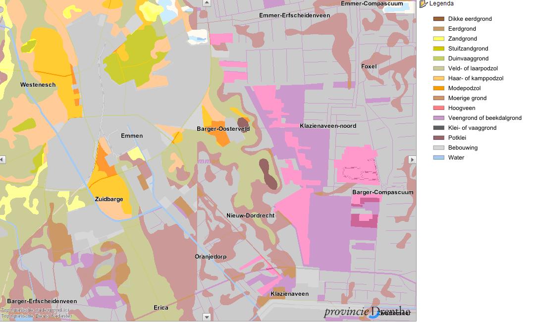 Bodemkaart Emmen (bron website provincie Drenthe).