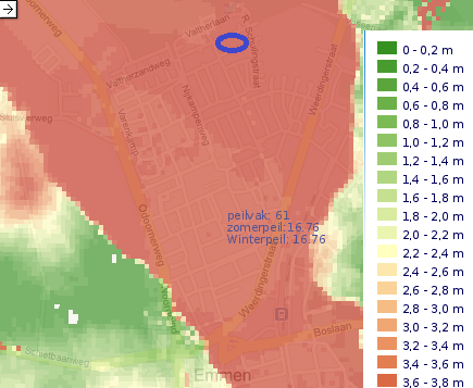 Het gebied heeft als hoofdfunctie wonen. Voor deze functie is de drooglegging van belang. Minimaal is het nodig dat 1,20 m drooglegging aanwezig is (de drooglegging is de afstand tussen het oppervlaktewaterpeil en het bouwpeil). Bij deze drooglegging kan een goede grondwaterstand voor de functie in het gebied worden bereikt.