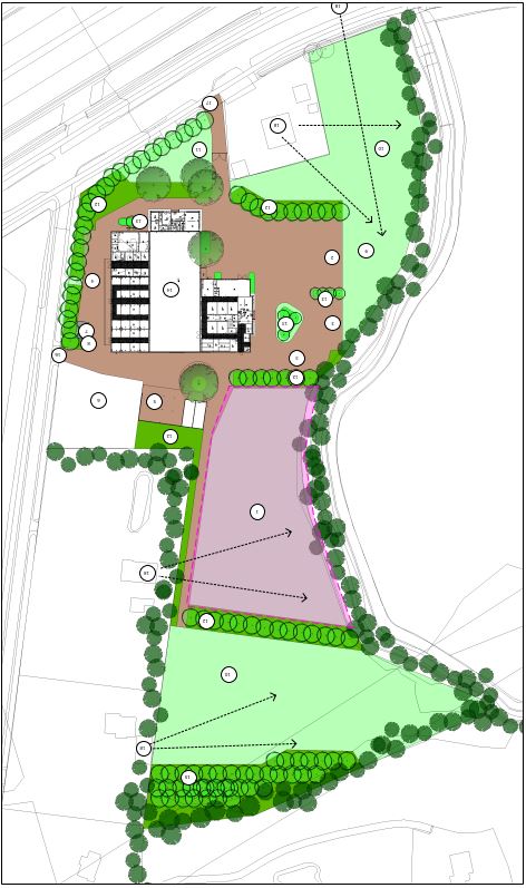 Het inrichtingsplan was als voorwaardelijke verplichting opgenomen in het bestemmingsplan van 2019. Hierin was een specifieke tekening opgenomen. Dit heeft tot gevolg dat kleine wijzigingen/aanpassingen niet voldoen aan het bestemmingsplan. De ruimte voor de paardenkliniek met omliggend erf blijft nagenoeg hetzelfde. De wijziging heeft betrekking op een andere inrichting van het parkeerterrein en een andere inrichting van het terrein waar de drafbaan, paddocks, rijpiste en longeerruimtes komen. Om te voorkomen dat bij toekomstige gewijzigde inzichten wederom een herziening nodig is, is de inrichting van het erf vrijer gelaten. De inrichting van natuur en groen is wel aangegeven.
