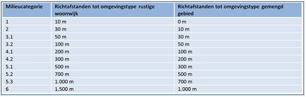 De Lijst van bedrijfstypen vermeldt de richtafstanden die bij voorkeur worden aangehouden tussen bedrijven en het omgevingstype 'rustige woonwijk'. Dit is een woonwijk die is ingericht volgens het principe van functiescheiding. Afgezien van wijkgebonden voorzieningen komen er vrijwel geen andere functies (zoals bedrijven, kantoren, winkels) voor. Hoe gevoelig een gebied is voor bedrijfsactiviteiten is mede afhankelijk van het omgevingstype. De gevoeligheid van een gebied kan daarom aanleiding zijn om gemotiveerd af te wijken van de richtafstanden in de Lijst van bedrijfstypen. Bij het omgevingstype 'gemengd gebied', een gebied met een matige tot sterke functiemenging, kunnen de richtafstanden met één afstandstap worden verminderd, zonder dat dit ten koste gaat van het woon- en leefklimaat.