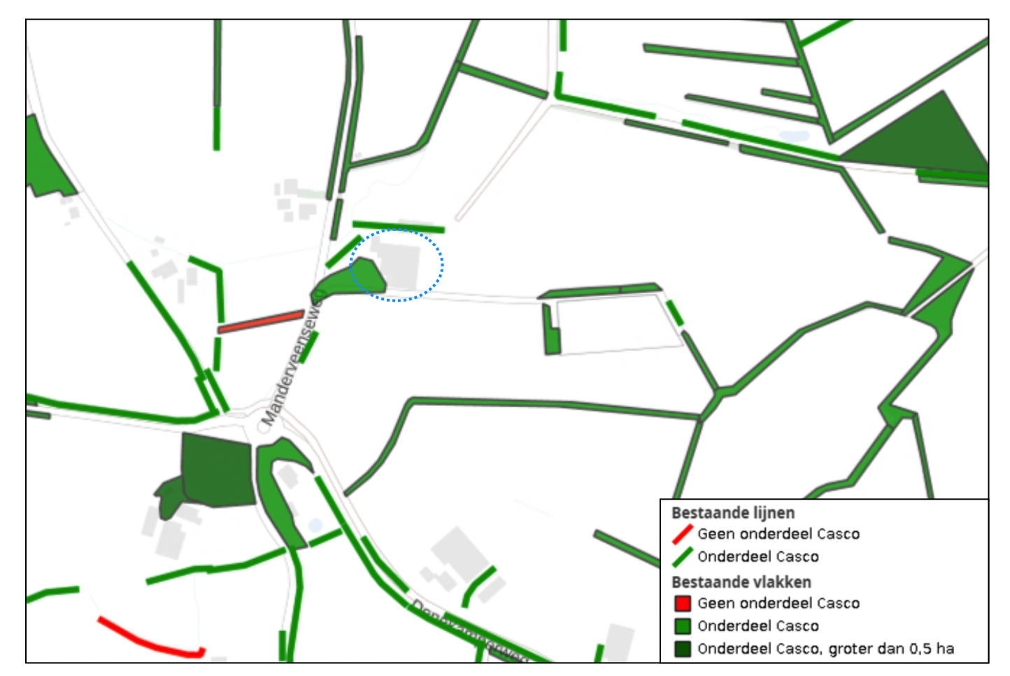 Het plangebied ligt niet binnen het concreet begrensde NNN. In onderstaande afbeelding is het plangebied met een blauwe cirkel aangeduid. Het dichtstbijzijnde NNN gebied is gelegen op circa 220 meter afstand ten noorden van het plangebied.