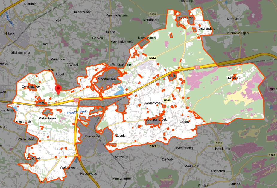 Daarnaast is het intrekkingsbesluit "Wijziging van het bestemmingsplan "Buitengebied 2012" door het intrekken van enkele onderdelen" (IMRO-idn. NL.IMRO.0203.IB1056-0001), vastgesteld op 11 november 2014, verwerkt, waardoor enkele onderdelen (diverse locaties) van het moederplan "Buitengebied 2012" zijn ingetrokken. Daarnaast is het bestemmingsplan "Buitengebied 2012" inmiddels vervangen door een aantal bestemmingsplannen (met op zichzelf staande bestemmingsplanregelingen, de zogenaamde postzegelplannen) en tevens een provinciaal inpassingsplan "Rondweg Voorthuizen N303" (met IMRO-idn. NL.IMRO.9925.IPN303Voorthuizen-VST1). Deze plannen zijn niet relevant, in die zin dat ze geen planologische gevolgen hebben, voor voorliggend plan.