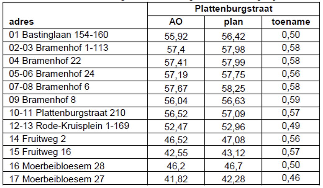 De boomstructuur aan de zijde van de Plattenburgstraat kan grotendeels gehandhaafd blijven. Als er bomen moeten wijken moeten deze worden verplant of worden vervangen door nieuwe aanplant.