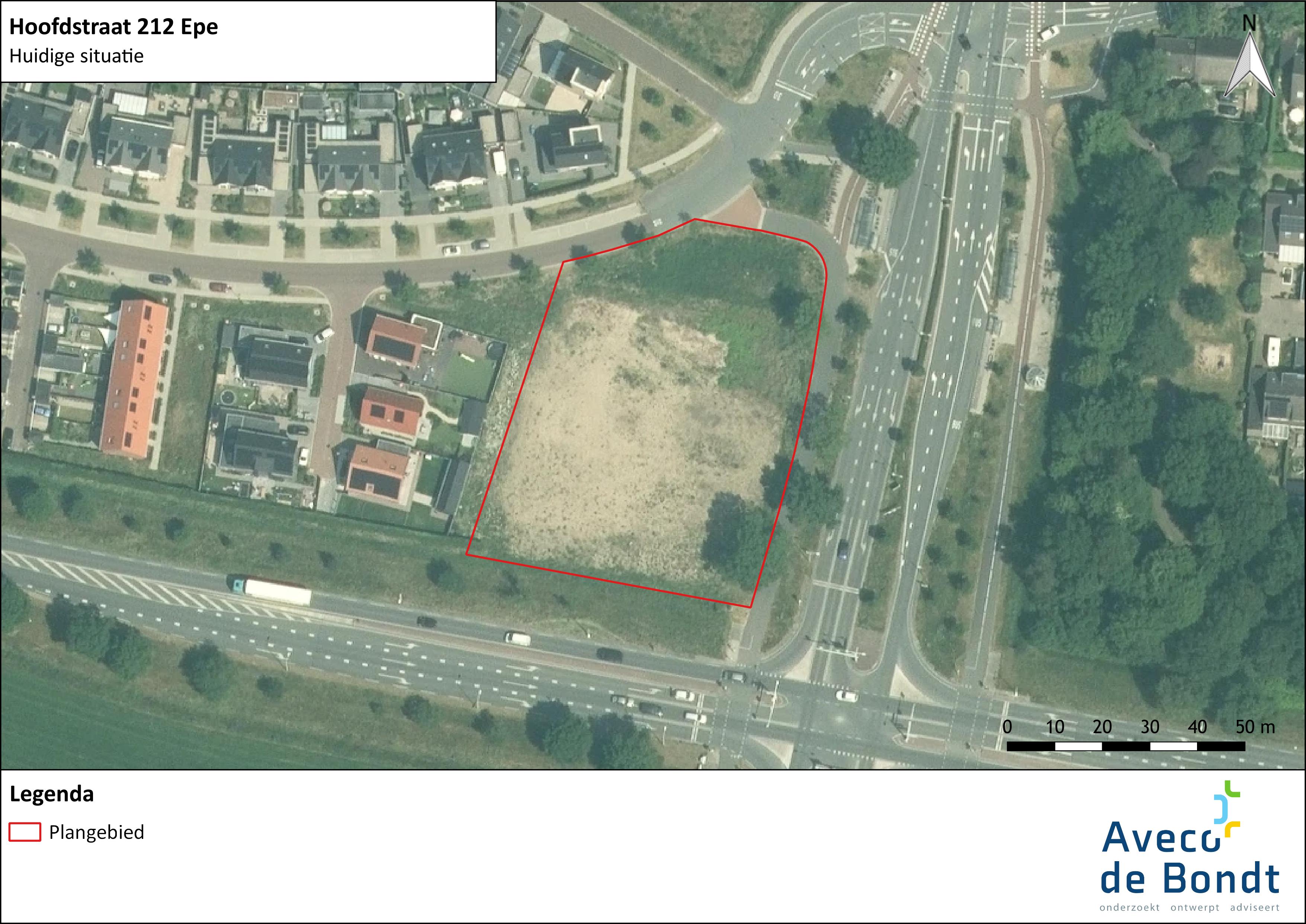 Het plangebied is gelegen aan de Hoofdstraat 212 te Epe. Het plangebied is gesitueerd aan de zuidrand van Epe, gelegen op de hoek van de Hoofdstraat en de N309. Onderstaande afbeelding toont de ligging en begrenzing van het plangebied.