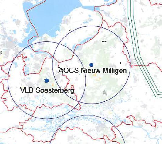 Afbeelding - Ligging radarverstoringsgebied Nieuw Milligen (bron: Commando Dienstencentra)