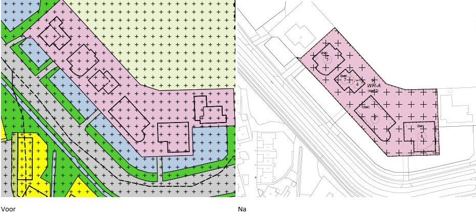 De verleende omgevingsvergunning is met dit veegplan ingepast in het ter plaatse geldende bestemmingsplan. Aan het betreffende perceel is de bestemming 'Wonen' met een bouwvlak, maximum goot- en bouwhoogten en maximum aantal wooneenheden (6) vastgelegd. Daarnaast heeft een deel van het perceel de bestemming 'Tuin' gekregen. Tevens is de dubbelbestemming 'Waarde - Archeologie' opgenomen, met 'specifieke vorm van waarde - 10'.