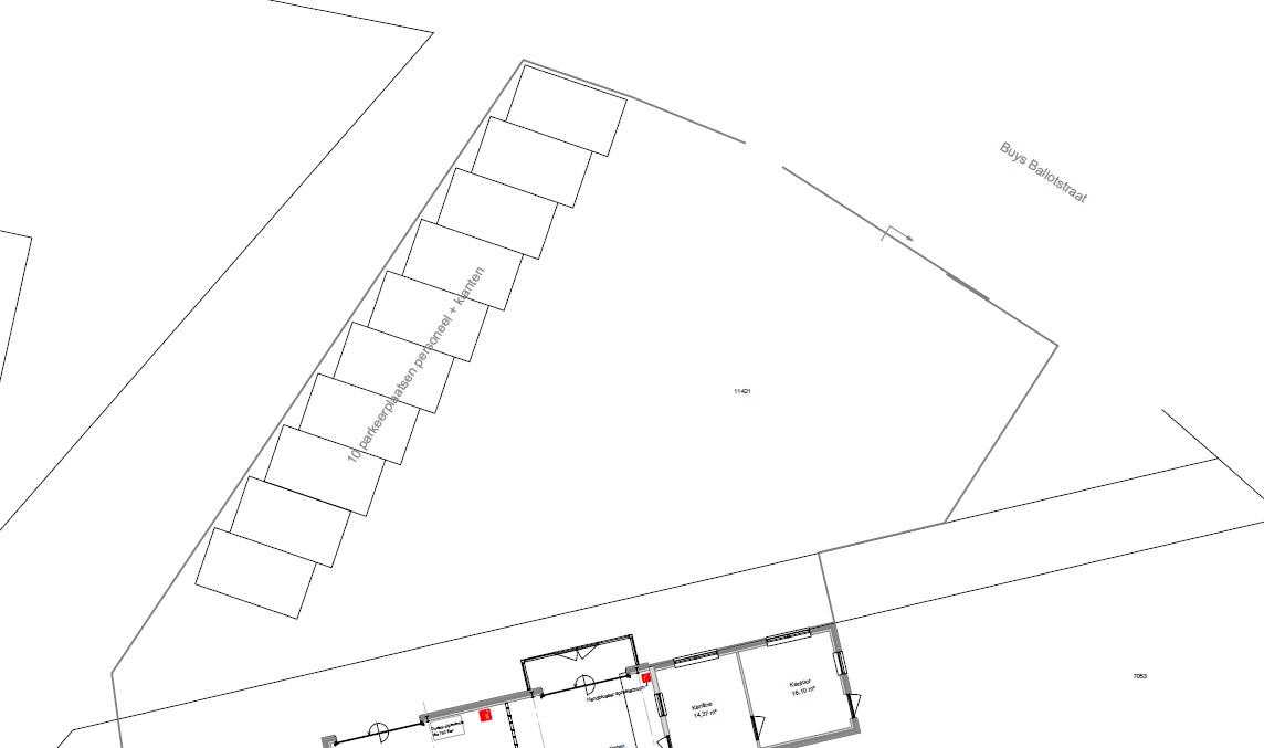 Het perceel Buys Ballotstraat ongenummerd (bij nummer 3) heeft in het geldende bestemmingsplan "Industrieterrein Veeneslat-Zuid" (vastgesteld op 24 juni 1999) de bestemming 'Groenvoorzieningen'. De met deze bestemming aangewezen gronden zijn bestemd voor groenvoorzieningen. Op onderstaande afbeelding is een uitsnede van de analoge plankaart weergegeven, het plangebied is bij benadering rood omlijnd.