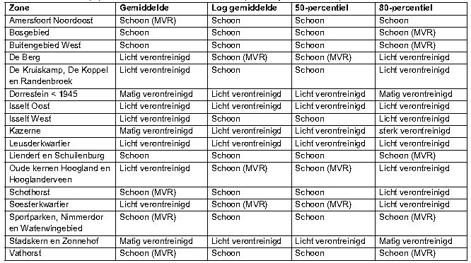 Voor het bestemmingsplan is als eerste met behulp van het bodeminformatiesysteem van de gemeente Amersfoort een inventarisatie uitgevoerd naar de bekende (mogelijke) gevallen van ernstige bodemverontreiniging in het betreffende plangebied. Binnen het plangebied is nog een aantal gevallen van (ernstige) bodemverontreiniging aanwezig. Plaatselijk zijn in het grondwater verhoogde gehaltes aanwezig van zware metalen.
