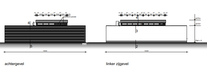 Vanuit een geheel nieuw perspectief heeft initiatiefnemer vervolgens een nieuw bouwplan ontwikkeld. Het ‘bouwplan 2018’ omvat vijf woningen, bestaande uit één bouwlaag met een plat dak, waarbij ten opzichte van het ‘bouwplan 2016’ kortere afstanden zijn opgenomen tussen de beoogde woningen en de bestaande woningen aan zowel de Nimrodlaan als de Jachtlaan. Een impressie van het ‘ontwikkelplan 2018’ is weergegeven in figuur 6.2.