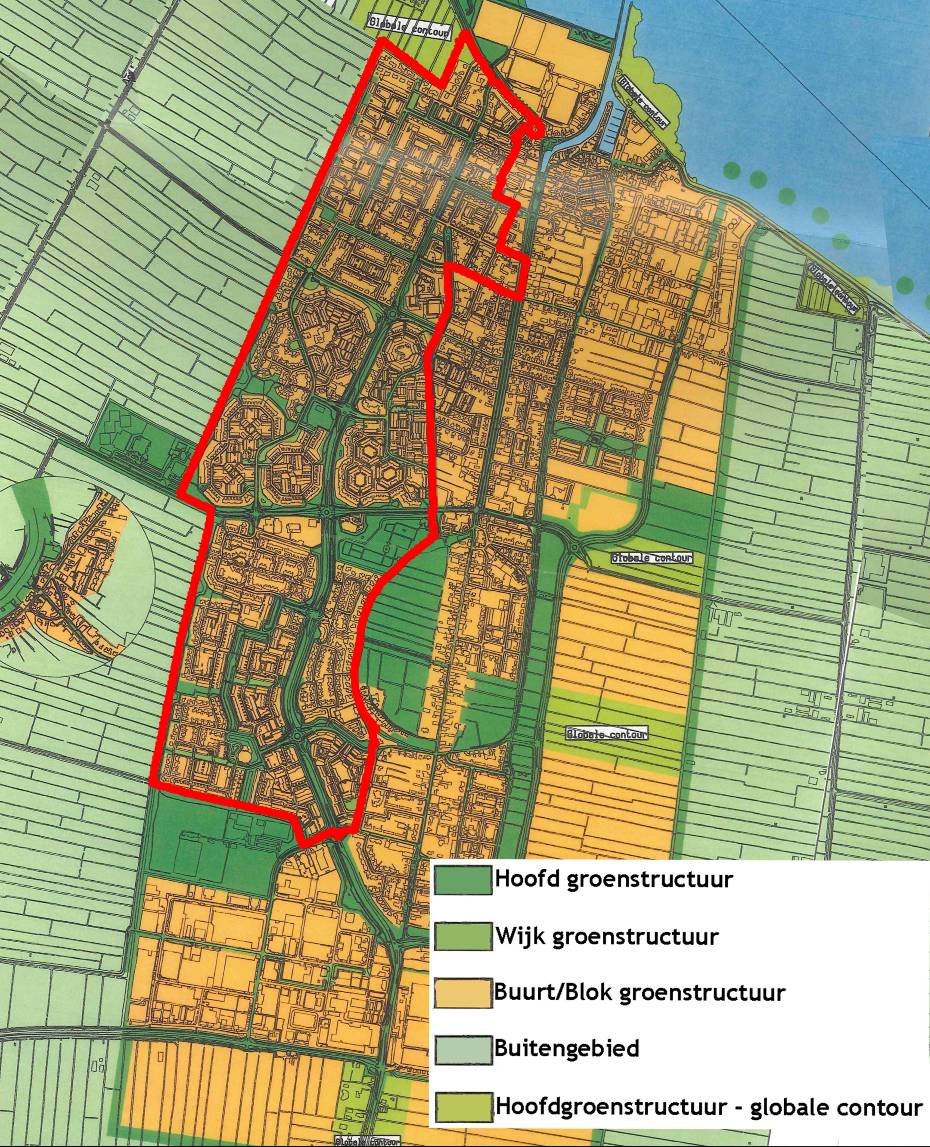 De Groenstructuurvisie Bunschoten 2005-2015 gaat uitvoerig in op de groenvoorzieningen in het plangebied. De groenstructuur is in het rapport opgedeeld in bouwstenen. Deze zijn: