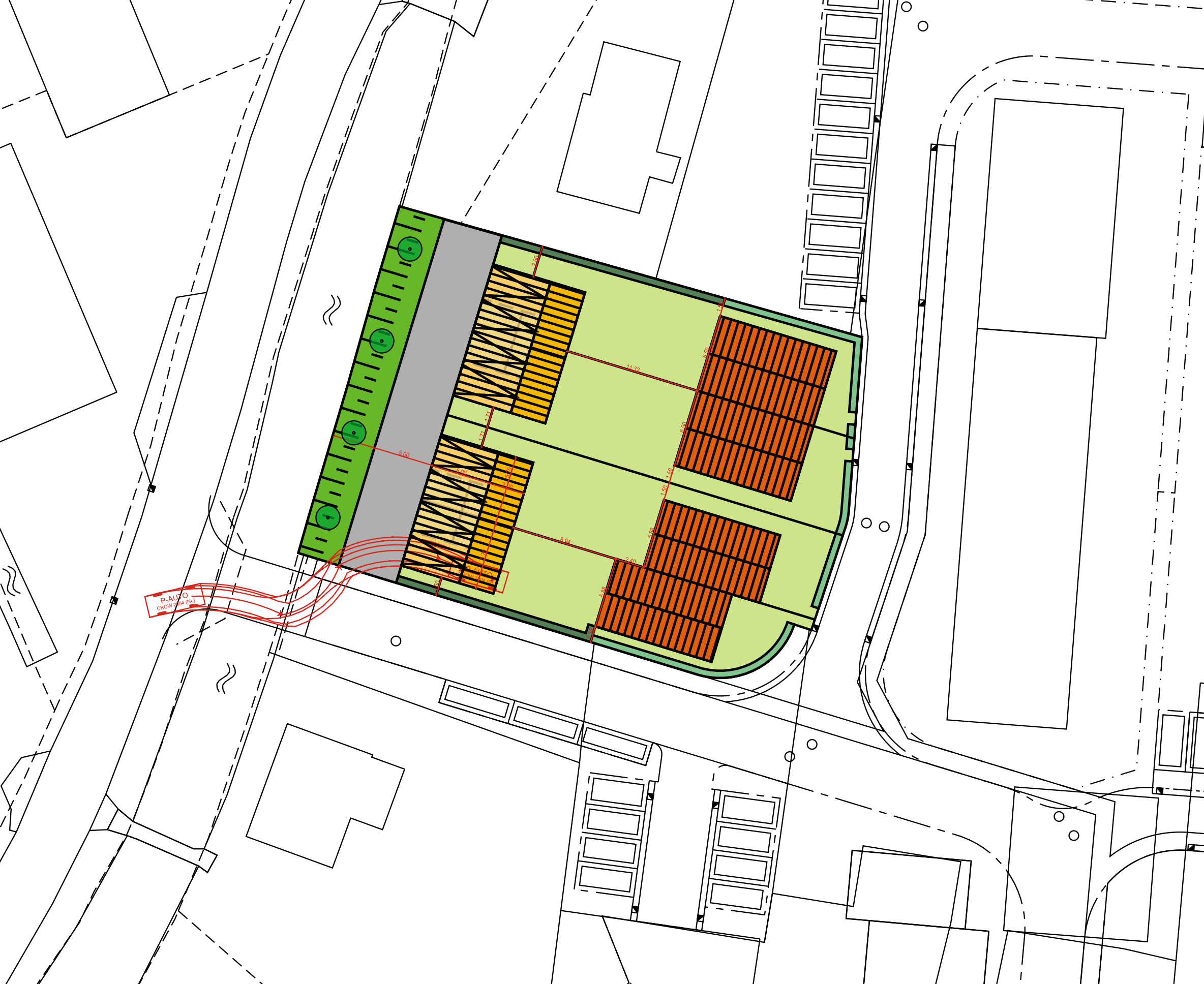 De westzijde van het perceel kent (rondom het langsparkeren) een groene en open inrichting, zodat water vanaf het perceel beleefbaar is, in combinatie met beplanting zoals knotwilg, els of fruitboom.