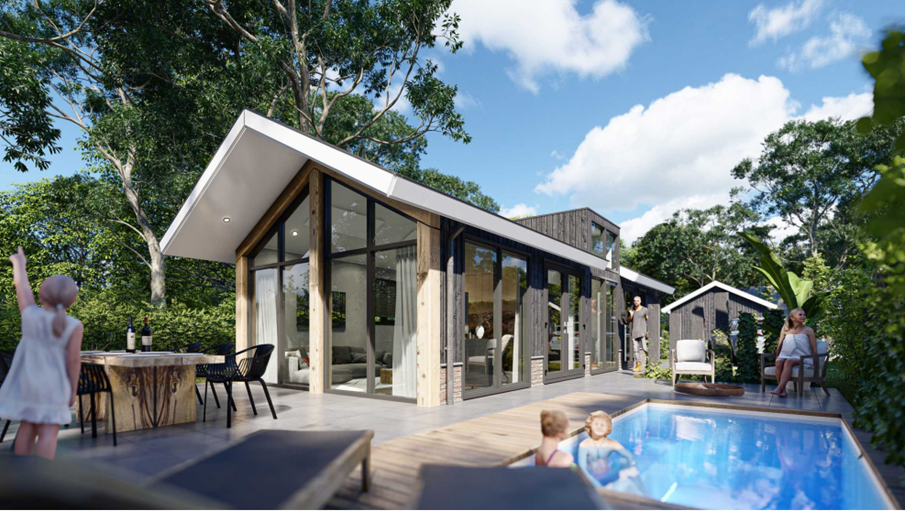 3D impressie van één van de 10 nieuwe eco-lodges (bron: Virtual architecture)