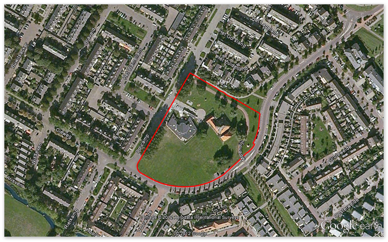 Aan de oostzijde van het plangebied bevinden zich de voormalige velden van korfbalvereniging Helios. Op de noordelijk gelegen delen van deze velden bevinden zich momenteel nood lokalen van het Clusius College.