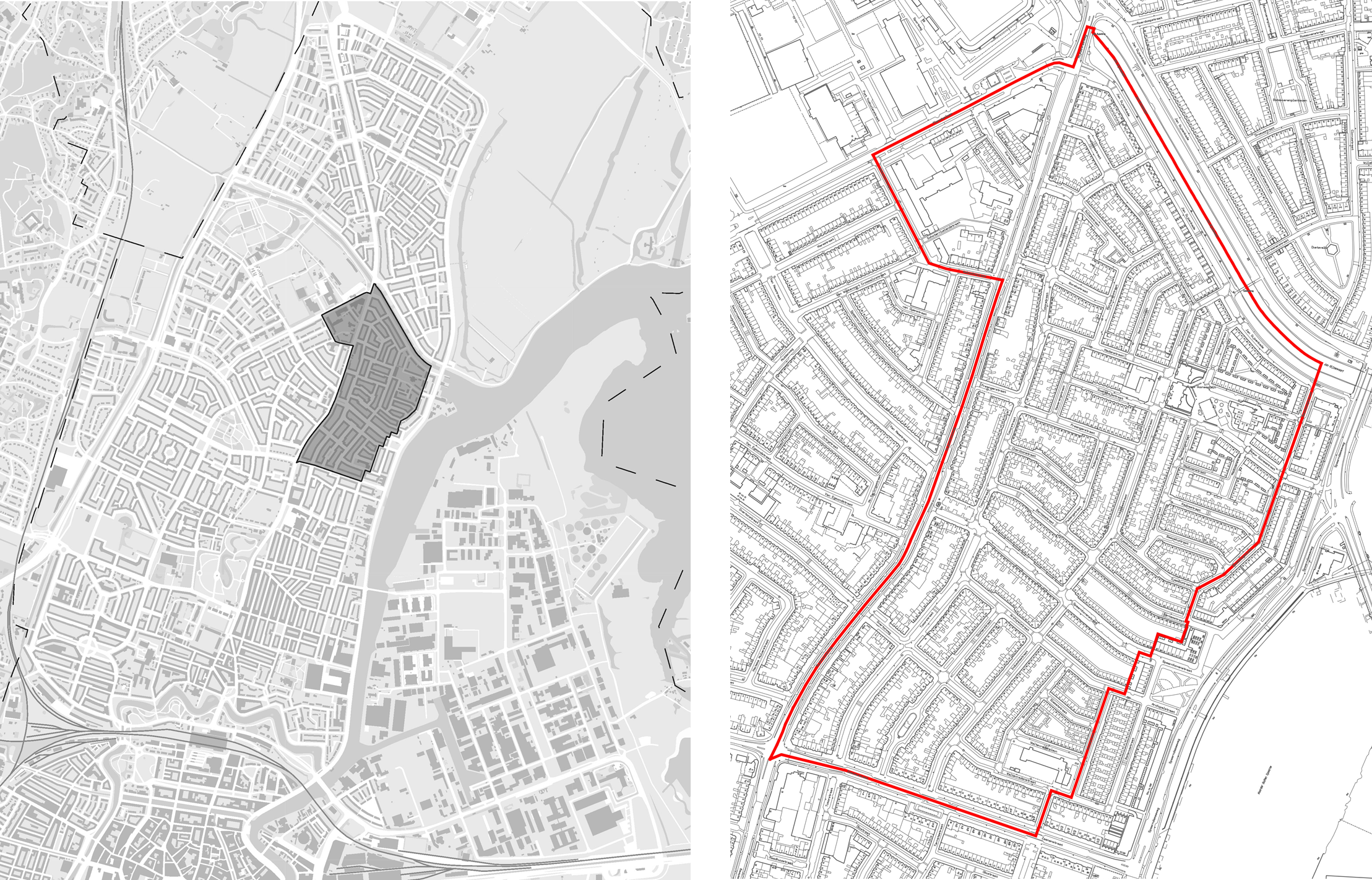 Het ligt ten noorden van de binnenstad van Haarlem en beslaat een oppervlakte van 36 ha. Het plangebied omvat het gebied in Haarlem Noord dat begrensd wordt door de Jan Gijzenvaart in het noorden, de Rijksstraatweg en Planetenlaan in het westen en de Zaanenstraat in het zuiden. De oostgrens volgt vanuit het noorden de Bandoengstraat, om bij de Bantamstraat het bouwblok naast nummer 114 te doorsteken uitkomend in de Spaarnhovenstraat naast nummer 105 en vervolgens naast Spaarnhovenstraat 96 het volgens bouwblok doorkruisend uitkomend naast Archipelstraat 89 en verder door de Solostraat uitkomend bij de Weltevredenstraat in een naamloze dwarsstraat tussen Weltevredenstraat en de Zaanenstraat, waar de zuidgrens loopt.