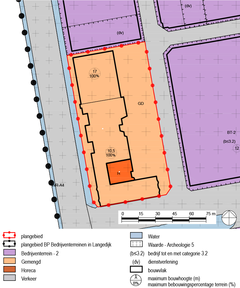 In het nieuwe bestemmingsplan Bedrijventerreinen in Langedijk is Zuiderdel opgenomen als gevarieerd bedrijventerrein. Sport en Leisurecentrum De Geus is sinds 1992 op het bedrijventerrein Zuiderdel gevestigd, dat een breed scala aan bedrijven van klein tot grootschalig huisvest, zoals omschreven in paragraaf 2.1. Ter plaatse geldt de bestemming “Gemengd”. De uitbreiding van de wellnessactiviteiten in het bestaande gebouw aan de Bijlestaal 64 past binnen de bestemming “Gemengd”. Het realiseren van een hotel past daarentegen niet binnen de regels van het bestemmingsplan.