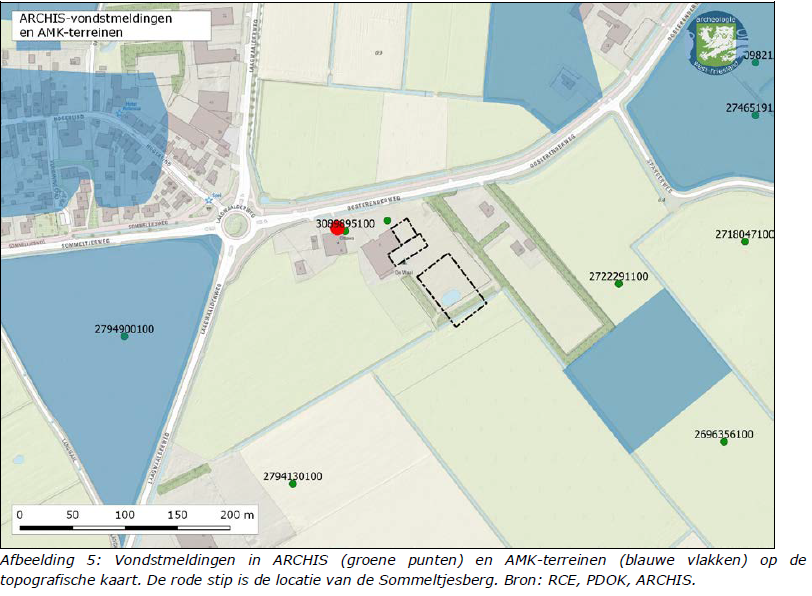 1. Archeologische dubbelbestemming voor de 'Sommeltjesberg' (Oosterenderweg 2 en omgeving) De Sommeltjesberg is gelokaliseerd. De Sommeltjesberg is een grafheuvel die in 1777 voor het eerst is afgegraven. Uit de heuvel kwamen Romeinse metaalvondsten en keramiek. Het bleek na onderzoek van P. van Cuyck te gaan om een inheems-Romeins 'tumulus', een grafmonument. Tumuli, afgegraven of niet, zijn zeldzaam. Uit het onderzoek (bijlage 1 bij dit bestemmingsplan) door Archeologie West-Friesland komt de conclusie dat er eventueel aanwezige archeologische waarden in de ondergrond aanwezig zijn. Voor het noordelijk deel geldt een hoge archeologische verwachting voor de prehistorie, Romeinse tijd en Middeleeuwen. Voor het zuidelijk deel geldt een gematigde archeologische verwachting. De huidige archeologische (dubbel) bestemming erkent de kans niet dat er op het terrein nog vergraven vondsten uit de Sommeltjesberg aanwezig kunnen zijn.