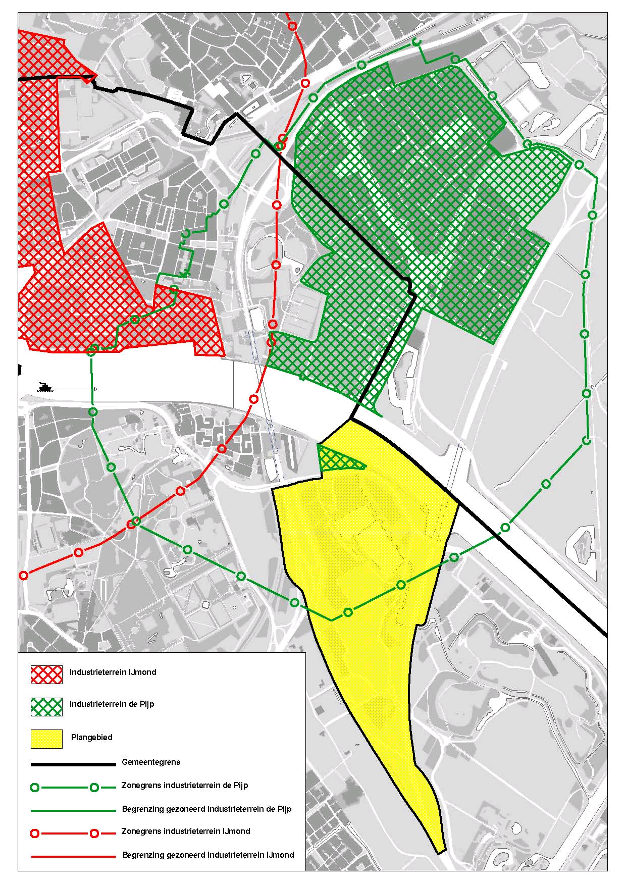 afbeelding 6, gezoneerde industrieterreinen nadat AWZI van Rijnland aan het gezoneerd industrieterrein is toegevoegd met bijbehorende geluidzones.