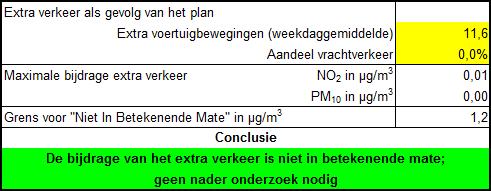 Uit voorgaande tabel blijkt dat ter plaatse van beide rekenpunten in 2015 en in 2020 ruim wordt voldaan aan de norm van 40 µg/m3 voor zowel stikstofdioxide als fijn stof.