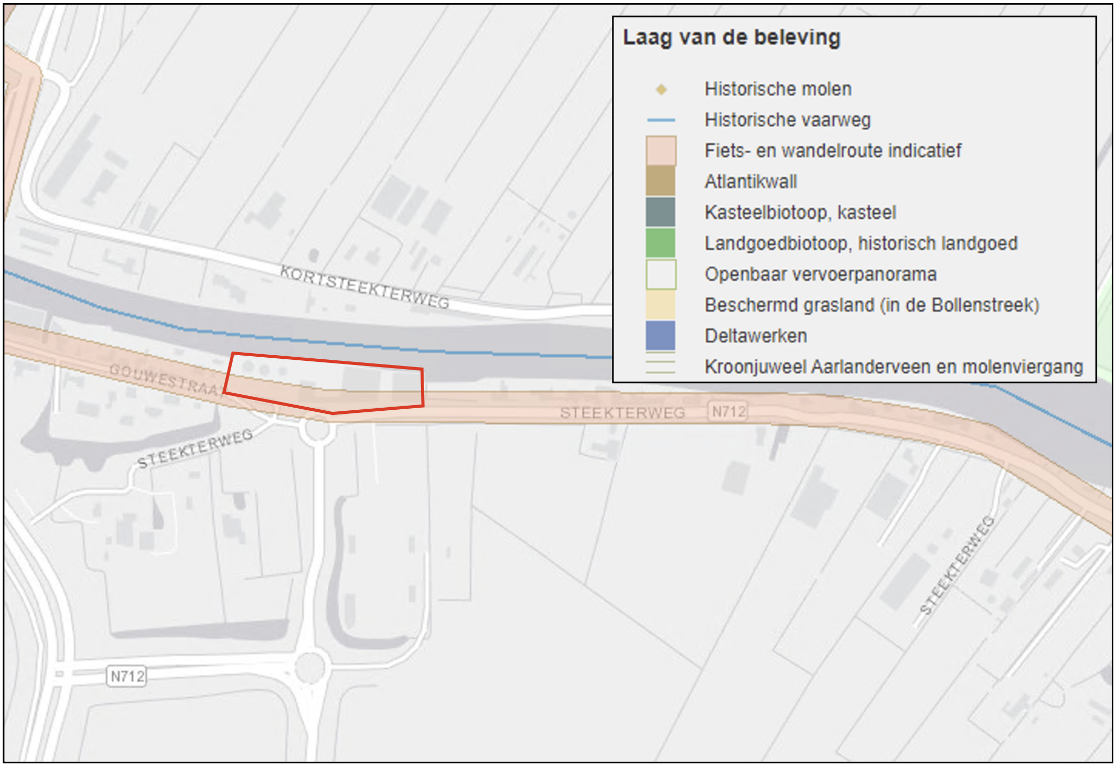 Deze laag gaat over de grondslag van de provincie en natuurlijke (landschapsvormende) processen. De laag bestaat uit de bodem, de geomorfologische kenmerken en het water. Binnen Zuid-Holland is daarbij grofweg een driedeling te maken tussen het complex van de kust (strand, duinen, strandwallen en strandvlakten), de natte veengronden en plassen ten oosten hiervan en de kleicomplexen en wateren van de delta. Op basis van deze laag is het plangebied gelegen in het 'Bijzonder reliëf - jonge stroomgordels en geulafzettingen'. Dit is weergegeven in afbeelding 4.1. Het plangebied is hierop indicatief aangegeven met de rode omlijning.