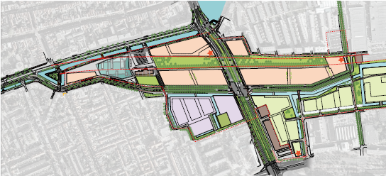 De ruimtelijke opzet van het gebied zoals opgenomen op de essentiekaart uit het IOP is vertaald naar bestemmingsvlakken op de verbeelding (de plankaart). De hoofdopzet van het plangebied is - zoals hiervoor is toegelicht - met het IOP niet gewijzigd ten opzichte van het Plan Busquets en het daarop gebaseerde bestemmingsplan 'Spoorzone'. In het nieuwe bestemmingsplan is uitgegaan van de bestaande hoofdopzet: de hoofdinfrastructuur, de locatie van de bouwvelden en het stadspark, het Stationsplein en de overige openbare ruimte. Binnen de bouwvelden zijn de bouw- en gebruiksmogelijkheden aangepast. De nieuwe hoofdinfrastructuur van het plan Busquets wordt al in samenhang met de tunnel in fasen gerealiseerd.