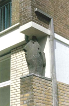 Architectonisch detail in de portiekwoningen aan De Rade.