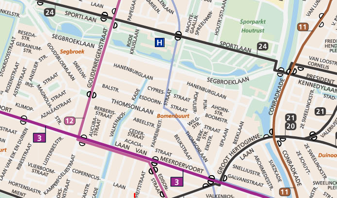 Lijnennetkaart Bomenbuurt e.o. (bron: www.htm.nl)