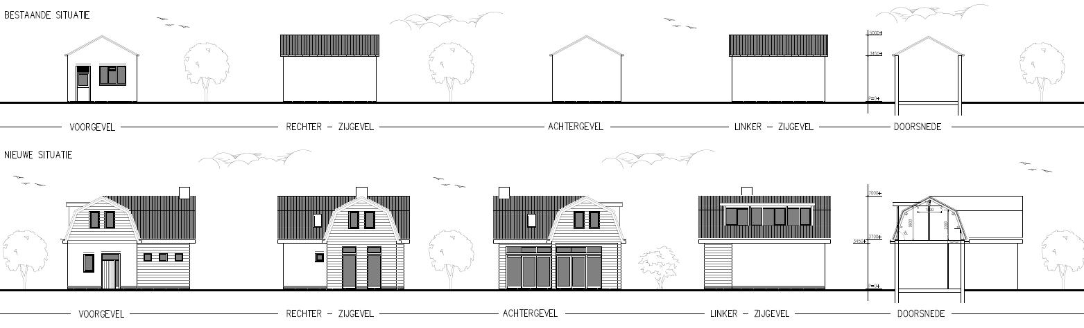 Het bijgebouw wordt verbouwd tot zelfstandige woning. Daarbij wordt zoveel mogelijk uitgegaan van het bestaande volume. Aan de westzijde (achterkant) en de noordzijde (zijkant) wordt het gebouw uitgebouwd. In totaal wordt het voormalige vrieshuisje met circa 30 m² uitgebreid. Verder wordt de nokhoogte opgerekt tot circa 7 meter om een volwaardige tweede bouwlaag te realiseren. Hiernavolgende afbeeldingen tonen de beoogde situatie en het verschil ten opzichte van de huidige situatie.