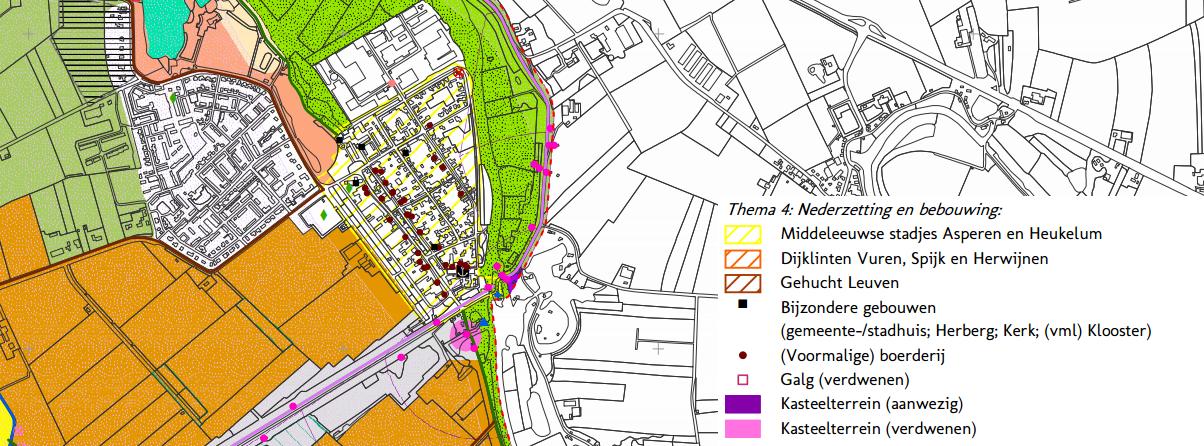De gemeentelijke cultuurhistorische waardenkaart bestaat uit verschillende thema's. Blijkens de waardenkaart is enkel het thema 'Nederzettingen en bebouwing' van toepassing. Binnen dit thema is het plangebied als 'Middelseeuse stadjes Asperen en Heukelen' aangewezen.