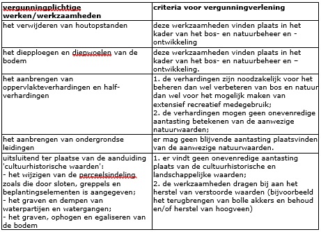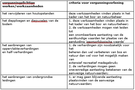 vergunningplichtige werken/werkzaamheden | criteria voor vergunningverlening |