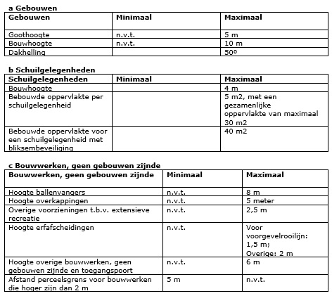 groepsaccommodaties | Opp. max. 180 m² Goothoogte: max. 3 m Bouwhoogte: max. 6 m | |