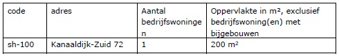 Een gebouw dat bestaat uit een (voormalige) agrarische bedrijfswoning met de in hetzelfde gebouw opgenomen (voormalige) agrarische bedrijfsruimten van bijzondere cultuurhistorische kwaliteit en zoals aangeduid in de als bijlage 2 opgenomen lijst bij de ‘Nota Ruimtelijke Kwaliteit’, vastgesteld door de gemeenteraad op 2 november 2011.
