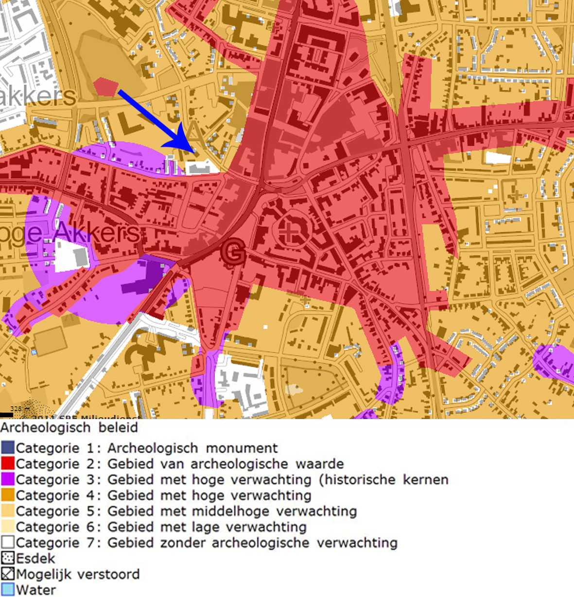 Categorie 4: Gebied met een hoge archeologische verwachting. In deze gebieden geldt op basis van geomorfologische en bodemkundige opbouw en aangetroffen archeologische vondsten en relicten een hoge archeologische verwachting. Dat wil zeggen dat in deze gebieden sprake is van een hoge concentratie archeologische vindplaatsen met goede conserveringsomstandigheden. De kans op het aantreffen van archeologische vondsten bij bodemingrepen is dus zeer groot. Om die reden is een archeologisch onderzoek vereist bij bodemingrepen en te bebouwen oppervlakten die groter zijn dan 500 m² en dieper gaan dan 0,3 m of 0,5 m bij esdek onder maaiveld. Indien nog geen oppervlakte van een totale vergraving bekend is, bijvoorbeeld bij bestemmingsplanwijzigingen, geldt de onderzoeksverplichting voor plangebieden groter dan 1000 m².