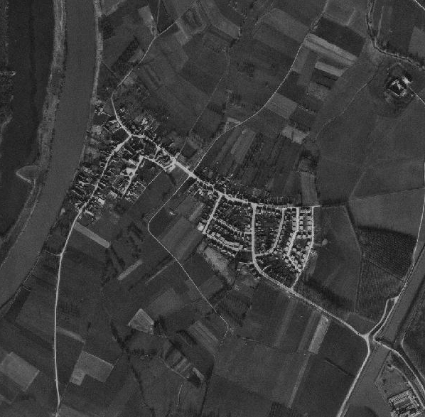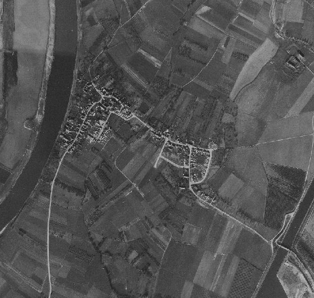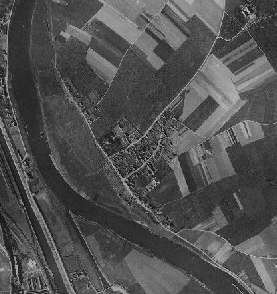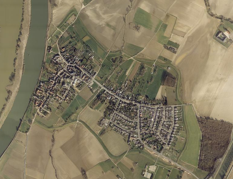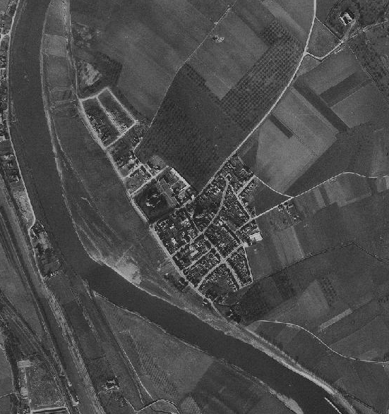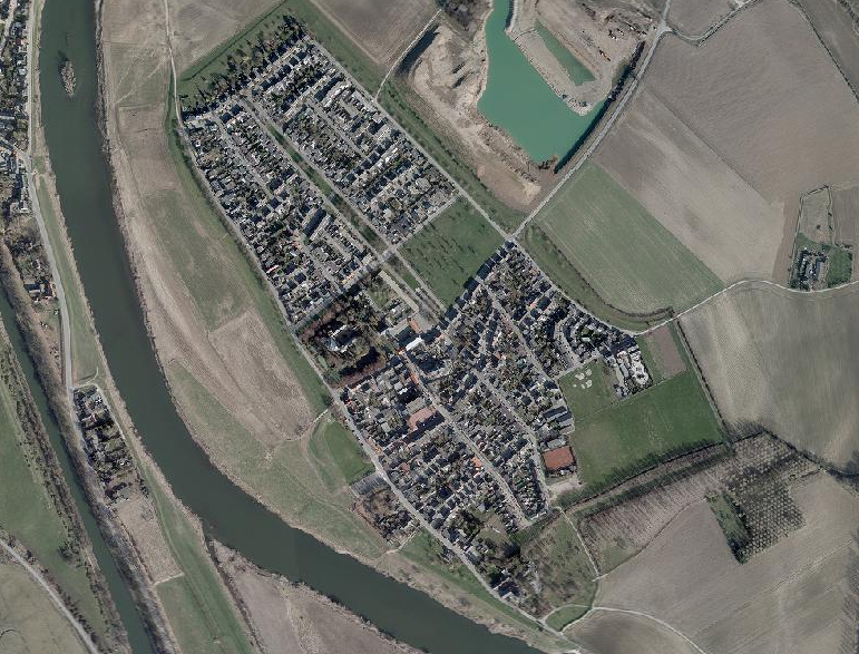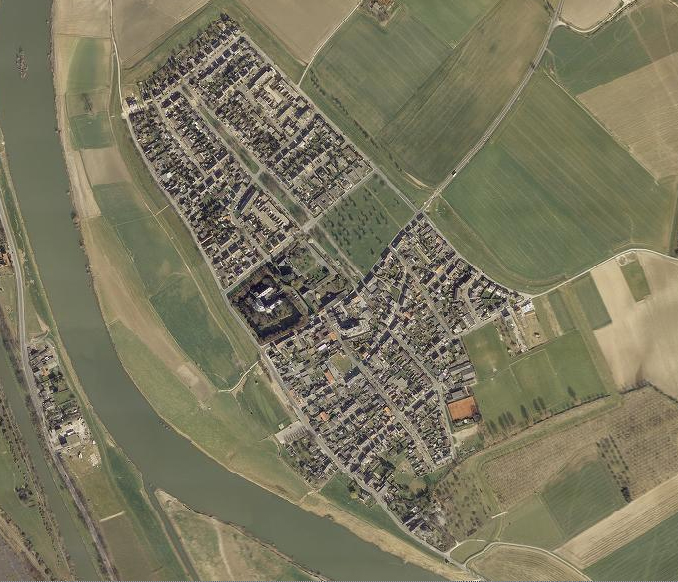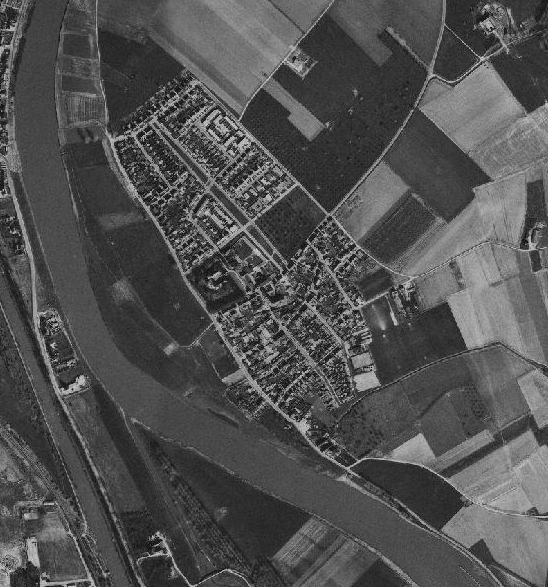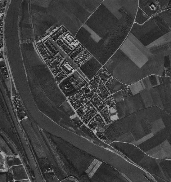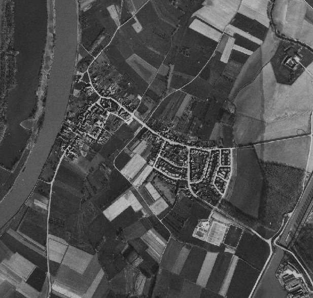 De navolgende luchtfoto's tonen de ontwikkeling van Borgharen door de tijd heen (linksboven beginnend in 1949, 1965, 1975, 1981, 2002 en rechtsbeneden eindigend in 2011).