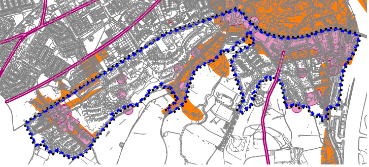 | (spoor)wegen | 30 m (invloedsgebied plasbrand) | 200 m (invloedsgebied BLEVE) | 1500 m (invloedsgebied toxisch) |