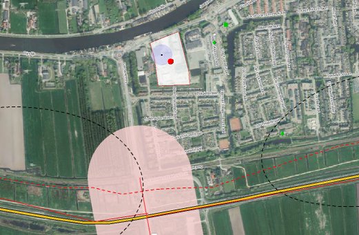 De volgende afbeelding toont een uitsnede van de risicokaart externe veiligheid.