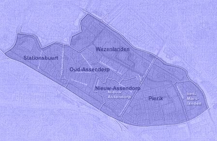 Afbeelding: een indruk van de ligging van de buurten in Assendorp